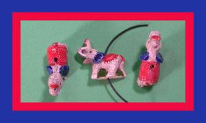 They're from Peru. They're ceramic. They're handpainted. Drilled top to bottom. Approximately 1 1/2 inches long. Takes a 1mm cord.