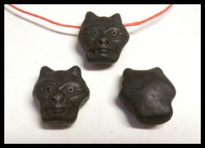 They're from Peru. They're ceramic. They're hand painted. The hole is ear to ear and won't quite take a 2mm cord. 7/8 inches across.